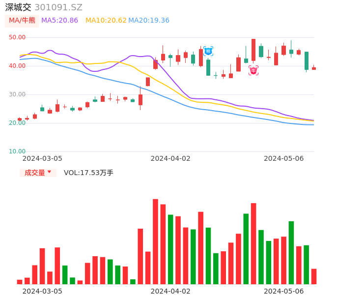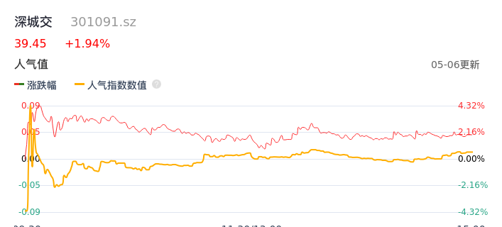 05月06日,深城交收报39.45,股价涨幅1.94%,成交金额6.95亿元,换手率11.83%。