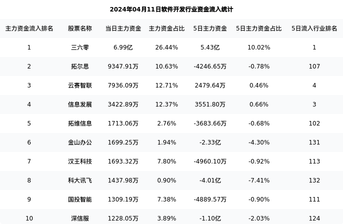 从主力资金流向来看,软件开发行业今日主力资金流入67.54亿元,在所有申万二级行业中排名:52/131。
