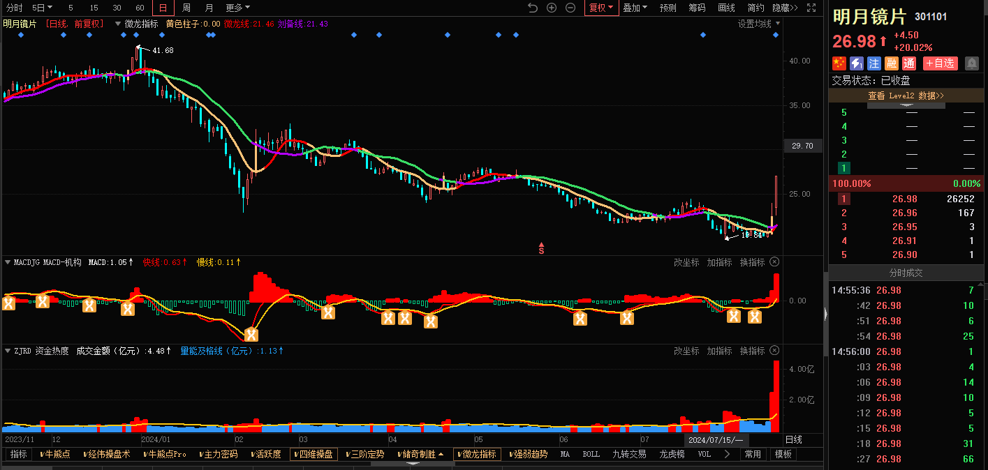 3)参考技术指标:明月镜片-微龙指标-出现启动K线信号