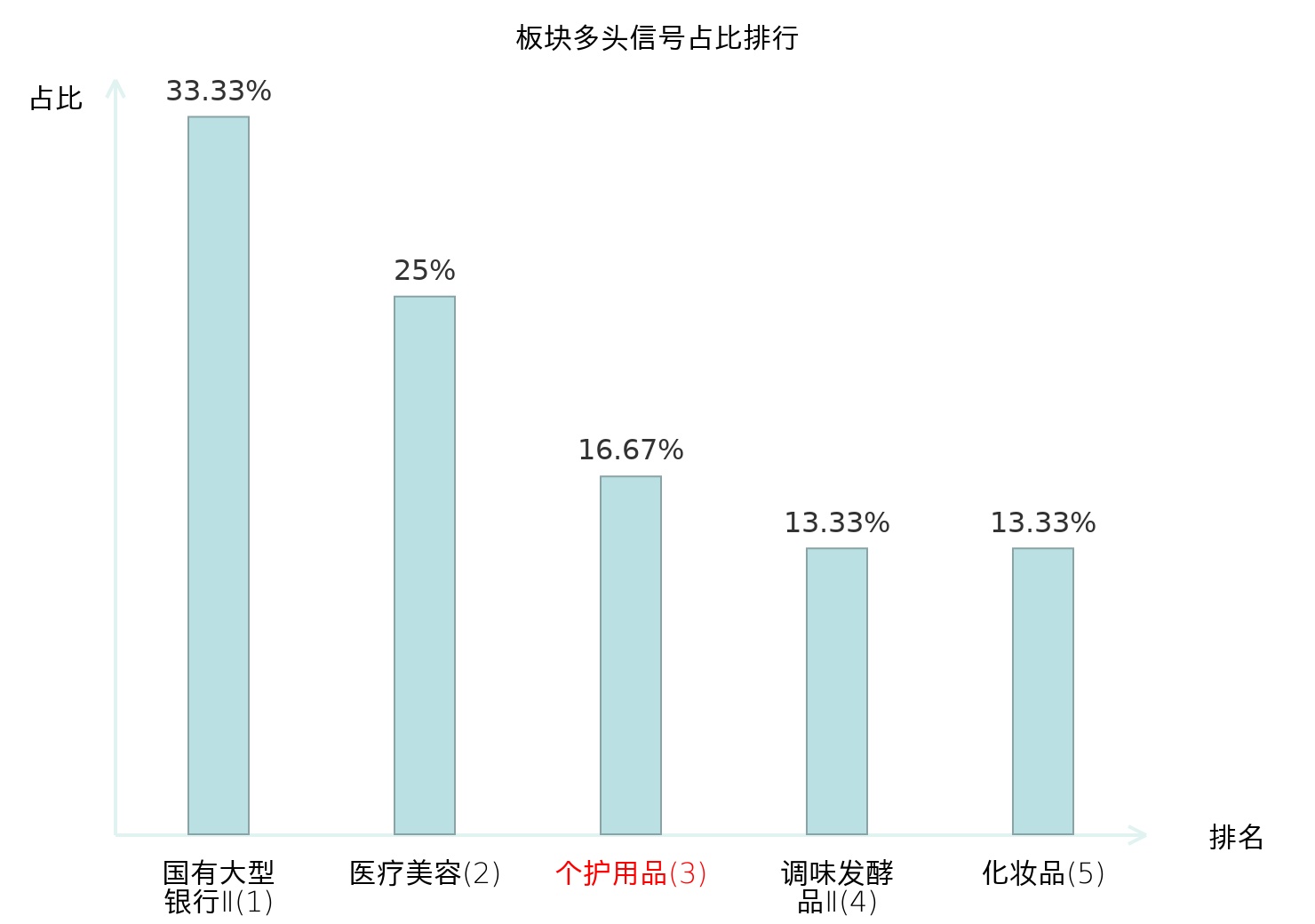 全市场所有行业板块中主力多头信号占比排名中,国有大型银行Ⅱ板块位居第一。医疗美容板块名次提升最快,较昨日上升125位。