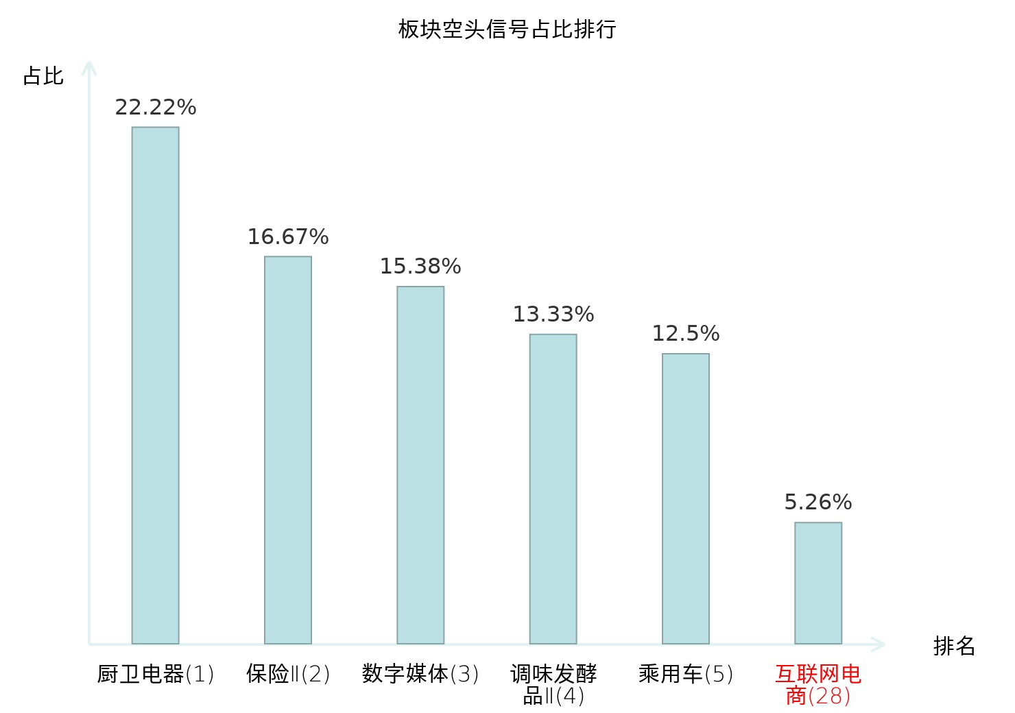 全市场所有行业板块中主力空头信号占比排名中,厨卫电器板块位居第一。教育板块名次提升最快,较昨日上升105位。