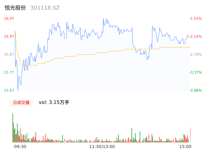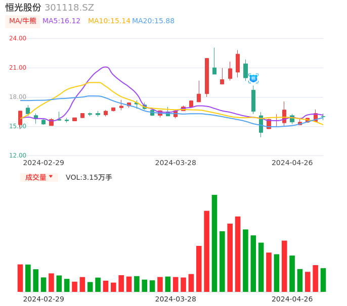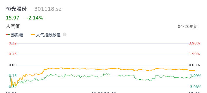 04月26日,恒光股份收报15.97,股价涨幅-2.14%,成交金额5020.46万元,换手率5.83%。