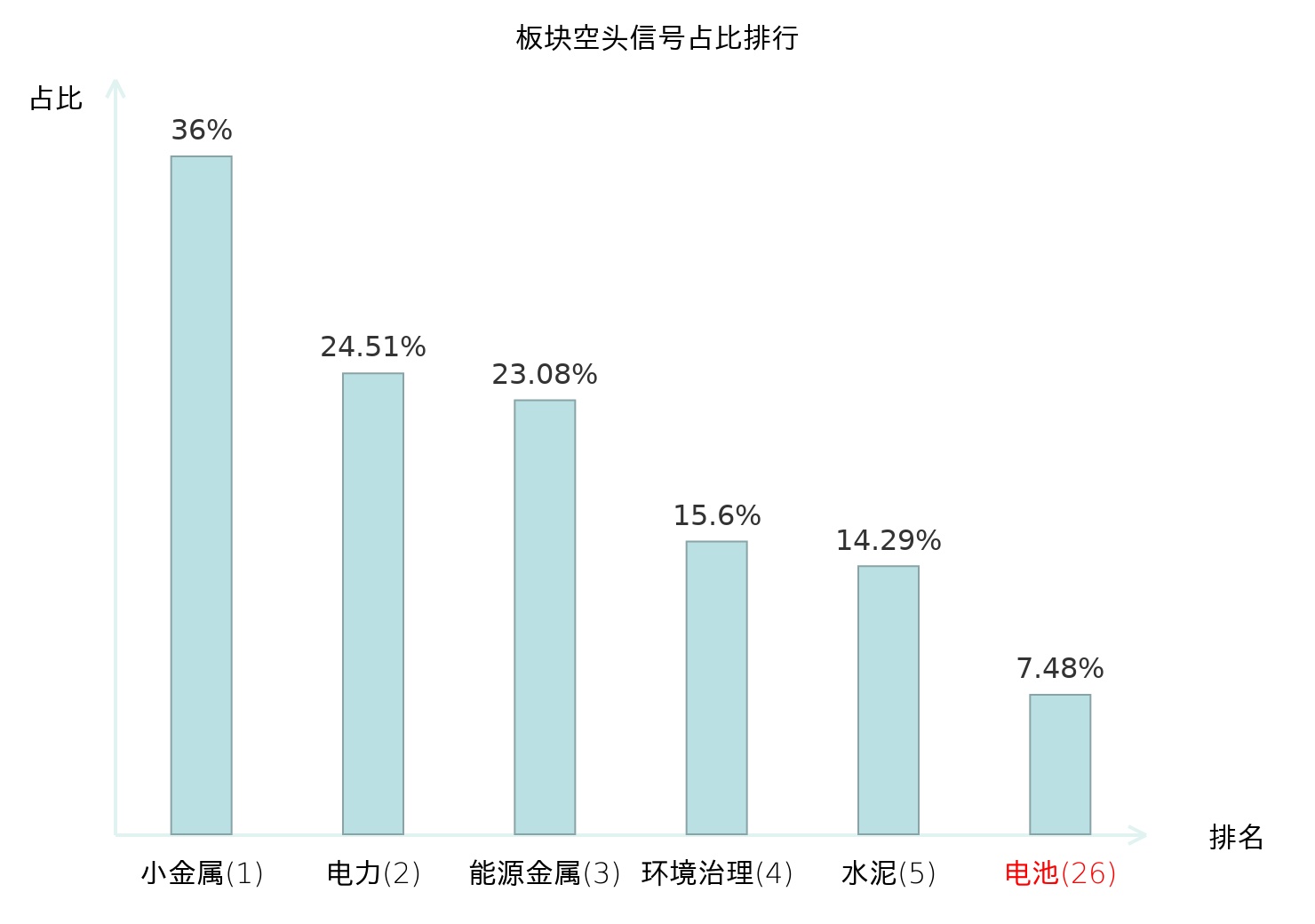 全市场所有行业板块中主力空头信号占比排名中,小金属板块位居第一。计算机设备板块名次提升最快,较昨日上升113位。