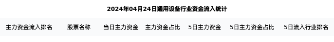 从主力资金流向来看,通用设备行业今日主力资金流入44.58亿元,在所有申万二级行业中排名:59/131。