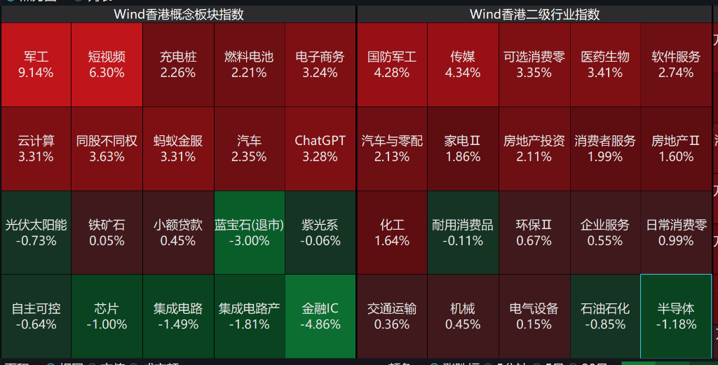 板块方面,今日港股市场呈现"新经济强、硬科技弱"的分化格局,军工与数字经济成为资金主要进攻方向,反映市场对地缘政治与线上经济的乐观预期。金融IC与半导体板块的下跌或受海外技术限制传闻影响,而能源板块调整则与大宗商品价格波动有关。市场风格明显偏向政策受益与内需驱动板块,科技领域内部出现明显轮动。