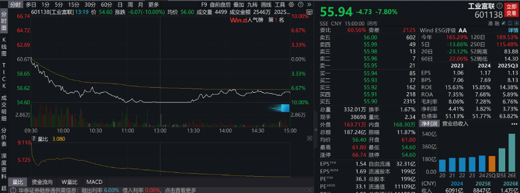 工业富联大幅下跌