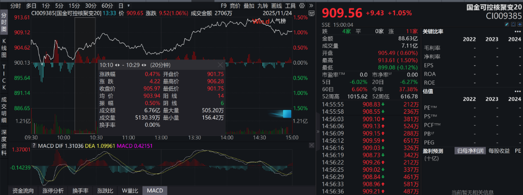 消息面,11月24日上午,中国科学院在合肥正式启动了 "燃烧等离子体"国际科学计划,并面向全球发布BEST研究计划,这标志着中国在攻克终极能源技术的道路上迈出了重要一步,为市场提供了巨大的想象空间。