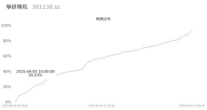 301138华研精机2025年06月05日成交4.78万手,成交金额1.71亿,相较昨日缩量243手,换手率6.96%,成交清淡。