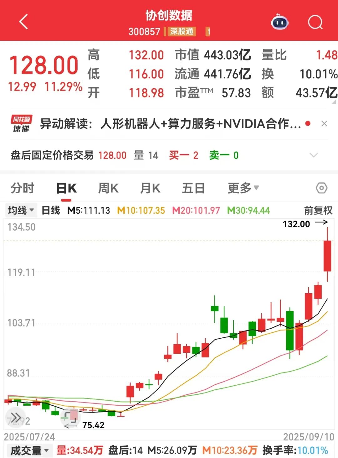 9月10日,协创数据(300857)大涨11.29%,收盘价创下历史新高,A股市值达到443.03亿元。最新收盘价与近3年低点相比,该股最大涨幅超11倍。