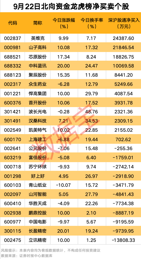 今日龙虎榜现身个股中,12股获北向资金净买入。净买入居首的是英维克,金额为2.44亿元;山子高科、芯原股份、中科蓝讯分别获净买入2.18亿元、1.88亿元、1.01亿元。