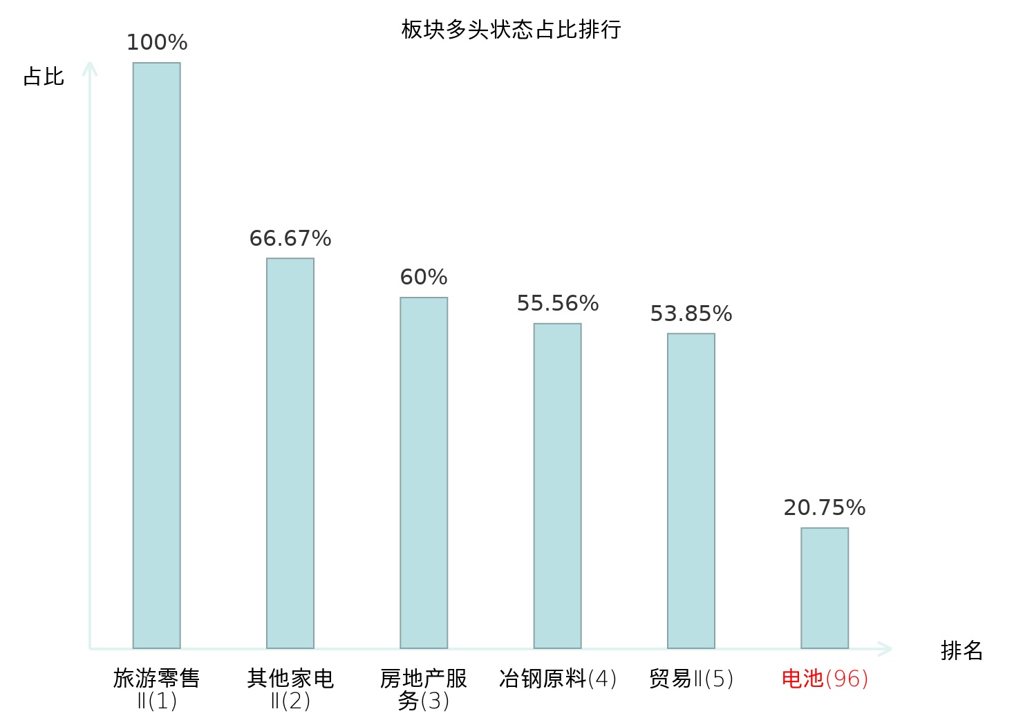 从主力宝信号数据分析,中一科技所属的电池板块中共有22只股票处于主力多头状态,主力多头状态占比在全行业中排名第96位,较昨日下降3位。排名越高说明主力对于板块整体看多意愿越强,此次排名下降可能反映了主力对该板块态度的微调。全市场所有行业板块中主力多头状态占比排名中,旅游零售Ⅱ板块位居第一;保险Ⅱ板块名次提升最快,较昨日上升65位。这些变化反映了主力资金在不同行业间的偏好调整,为投资者提供了市场情绪和潜在投资机会的重要线索。