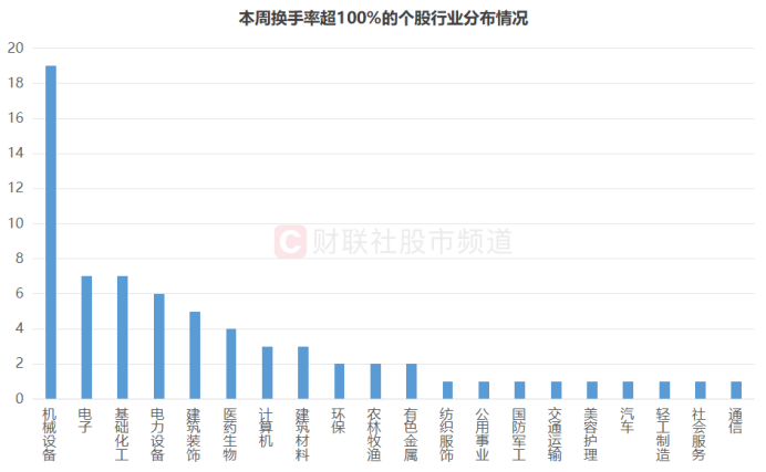 注:本周换手率超100%的个股行业分布情况(截至7月25日数据)