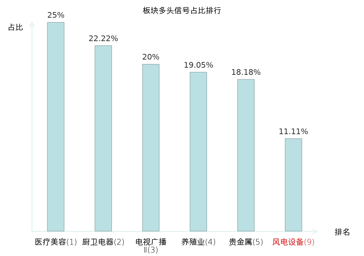 全市场所有行业板块中主力多头信号占比排名中,医疗美容板块位居第一。医疗美容板块名次提升最快,较昨日上升126位。