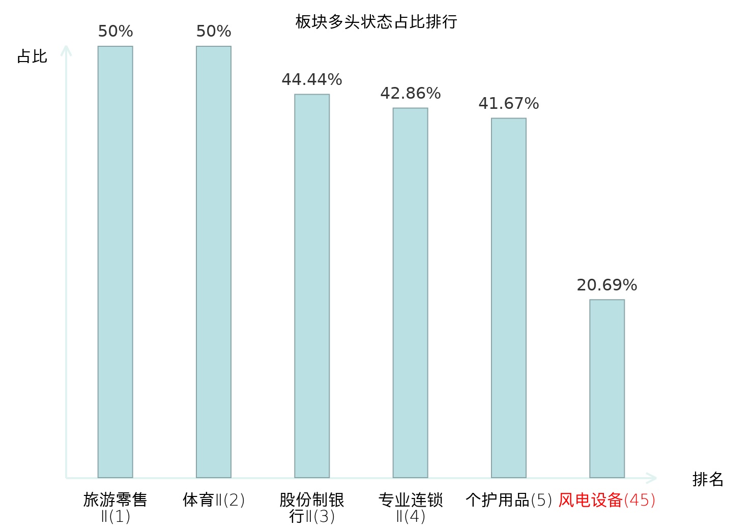 从主力宝信号数据分析,海力风电所属的风电设备板块中共6只股票处于主力多头状态,主力多头状态占比在全行业中排名第45位,较昨日下降26位;排名越高说明主力对于板块整体看多意愿越强;此次排名下降可能反映主力对该板块态度出现一定弱化。全市场所有行业板块中主力多头状态占比排名中,旅游零售Ⅱ板块位居第一;贵金属板块名次提升最快,较昨日上升83位;这些变动揭示了不同行业间主力资金配置倾向的动态调整,为投资者评估板块相对强度及潜在轮动机会提供了客观依据。