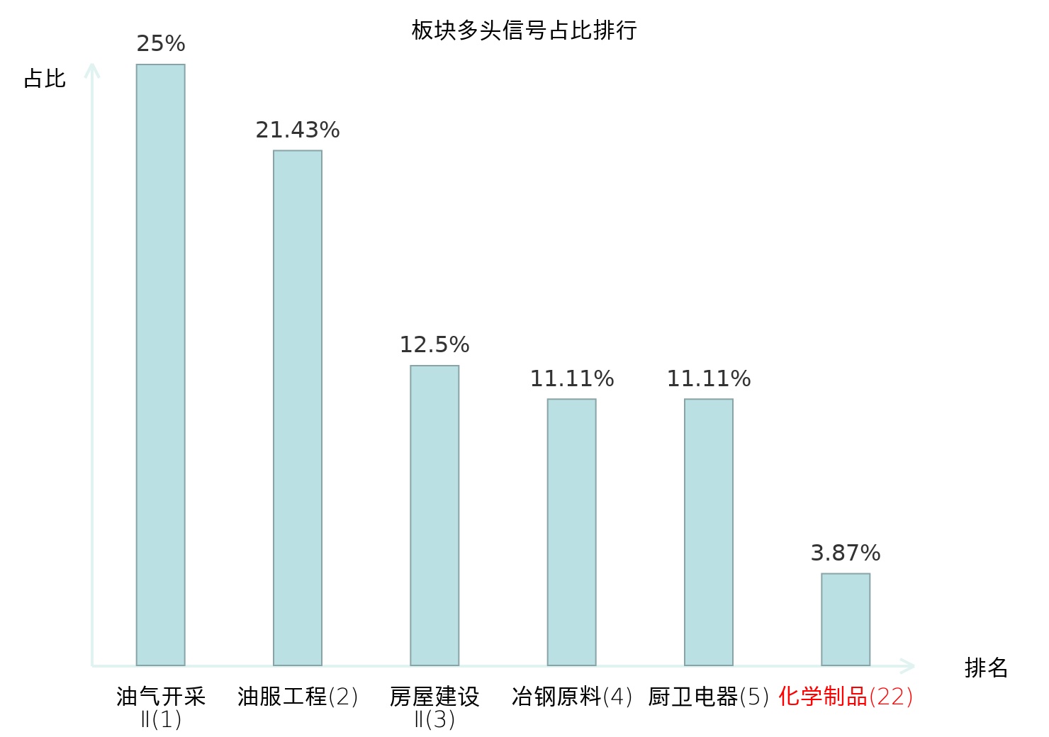 全市场所有行业板块中主力多头信号占比排名中,油气开采Ⅱ板块位居第一。油气开采Ⅱ板块名次提升最快,较昨日上升125位。
