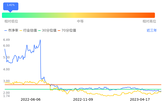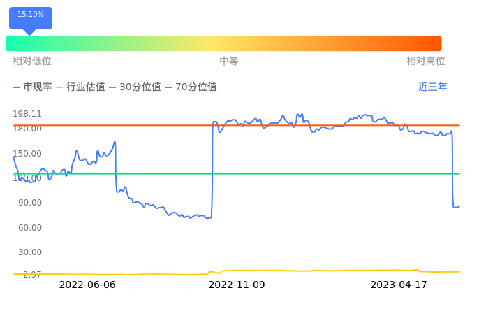 2023年04月17日,翔楼新材上涨1.64%收于35.92,今日成交金额2732.46万元。下文将从市盈率PETTM、市净率PB、市现率3个角度去分析公司估值情况。