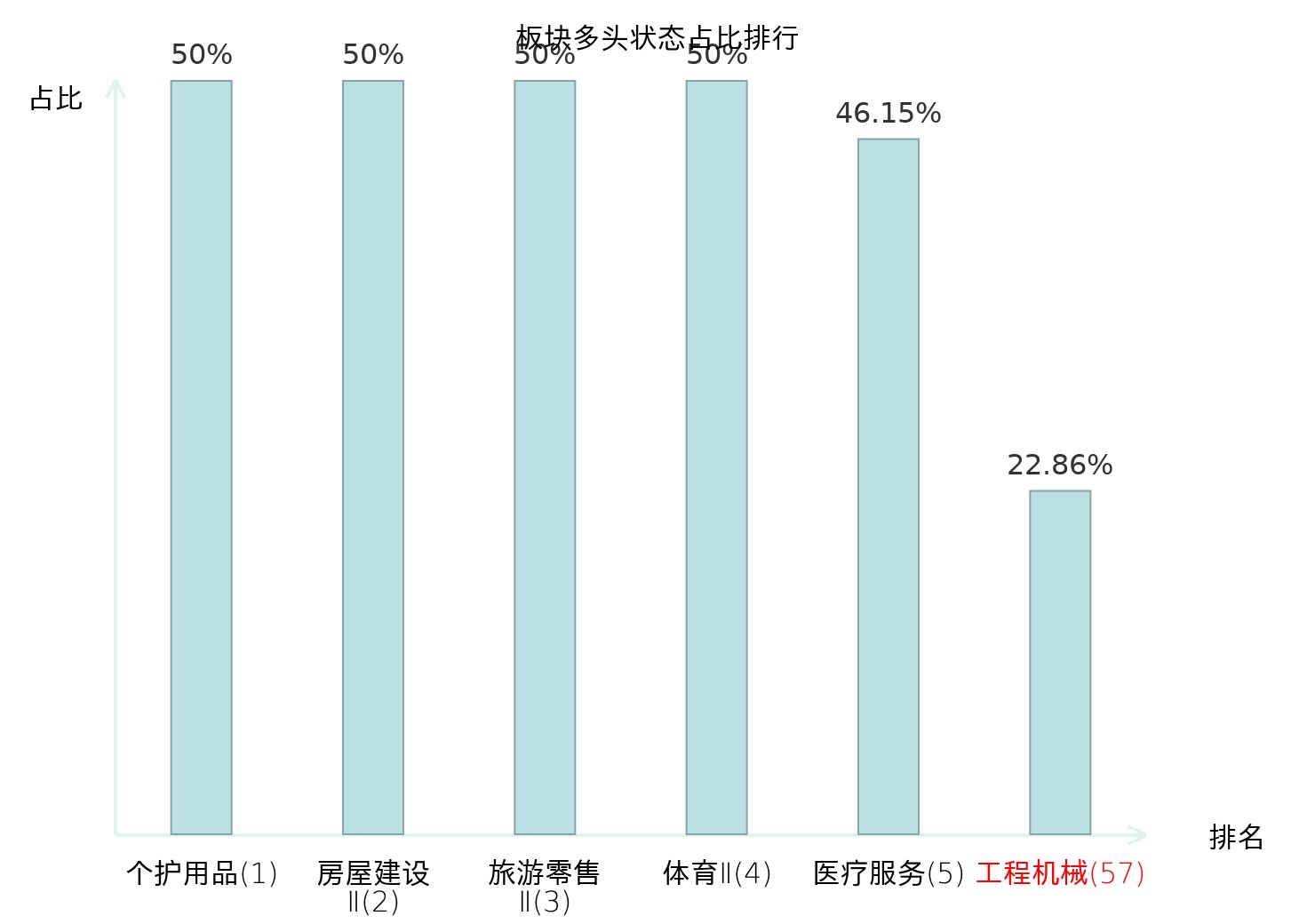 全市场所有行业板块中主力多头状态占比排名中,个护用品板块位居第一。影视院线板块名次提升最快,较昨日上升56位。