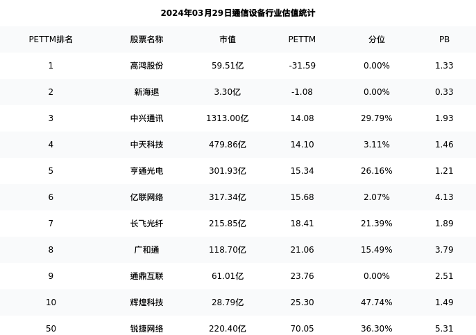 从估值角度看:锐捷网络最新市盈率PETTM为70.05,在行业内排名49/88,处于36.30分位。