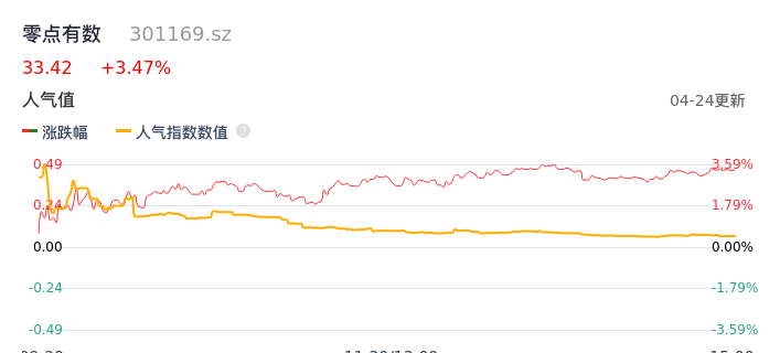 04月24日,零点有数收报33.42,股价涨幅3.47%,成交金额5057.90万元,换手率5.43%。
