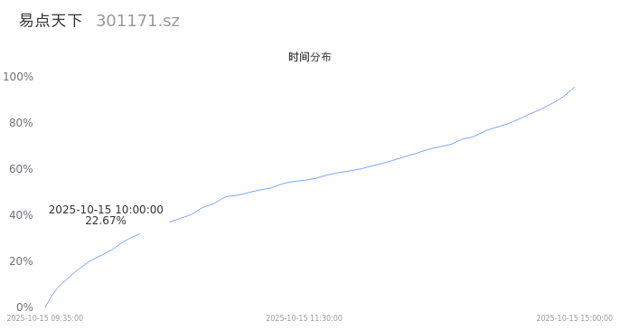 301171易点天下2025年10月15日成交19.04万手,成交金额5.78亿,相较昨日缩量13.55万手,换手率5.10%,成交清淡。