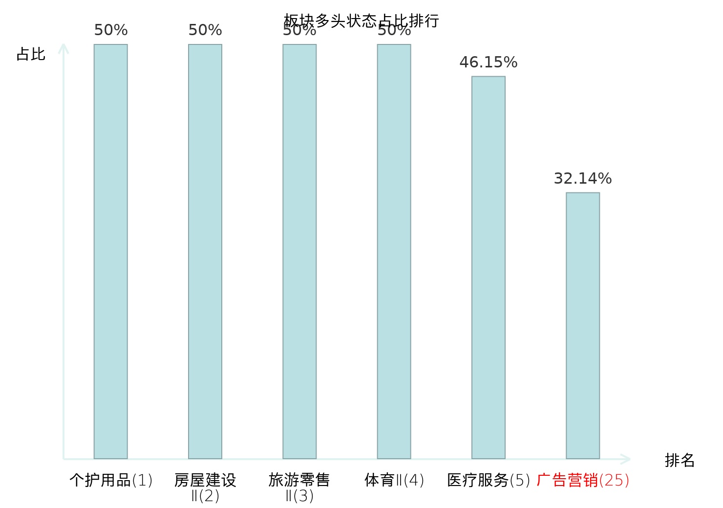 从主力宝信号数据分析,易点天下所属的广告营销板块中共9只股票处于主力多头状态,主力多头状态占比在全行业中排名第25位,较昨日上升44位。较高的排名表明主力对于该板块整体看多意愿较强;此次排名大幅上升可能反映了主力对该板块态度的显著强化。全市场所有行业板块中主力多头状态占比排名中,个护用品板块位居第一。影视院线板块名次提升最快,较昨日上升56位。这些变动揭示了不同行业间主力资金配置倾向的动态调整,为投资者评估板块相对强弱及潜在关注方向提供了客观依据。