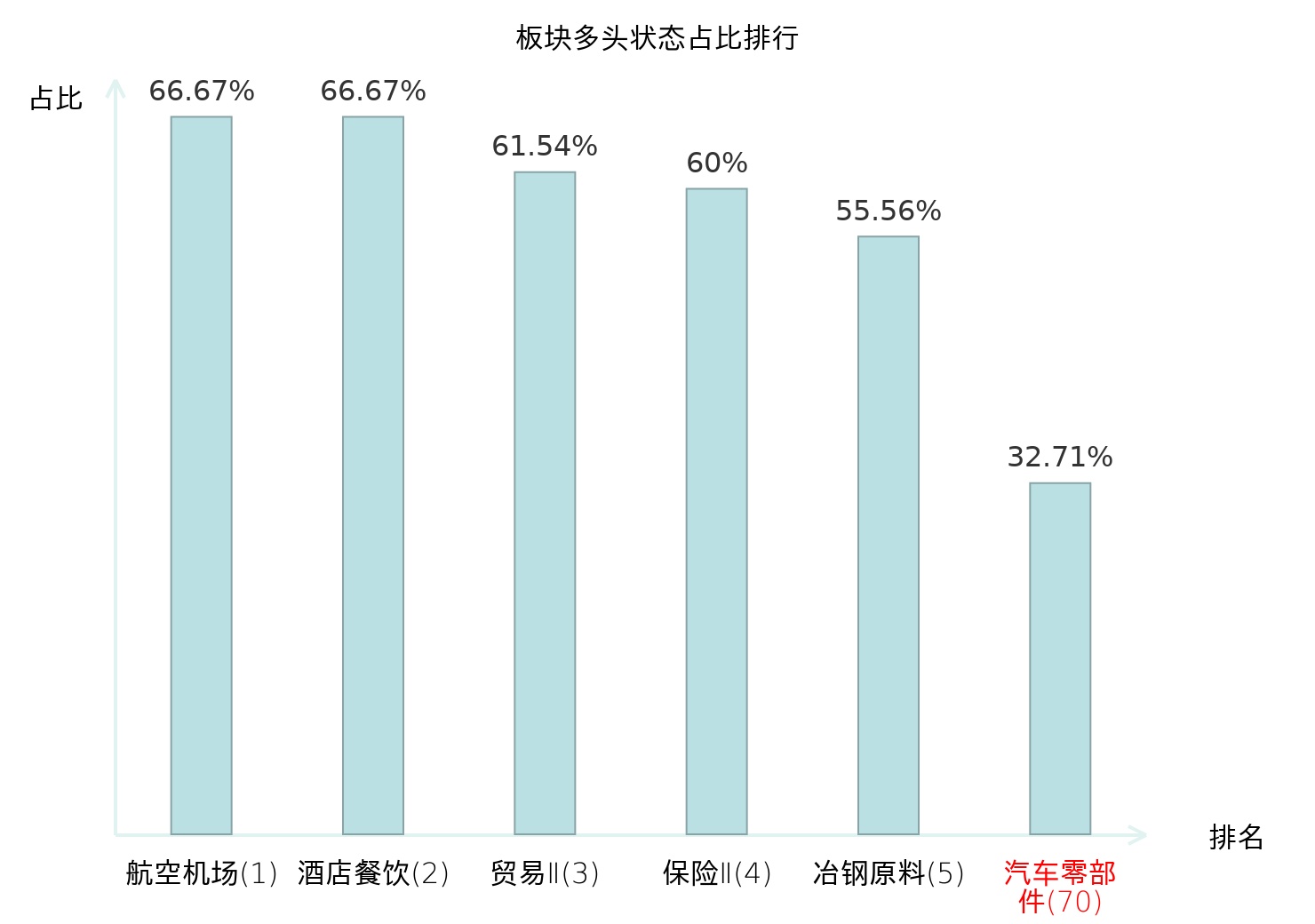 从主力宝信号数据分析,标榜股份所属的汽车零部件板块中共87只股票处于主力多头状态,主力多头状态占比在全行业中排名第70位,较昨日下降5位。较高的排名表明主力对于该板块整体看多意愿较强,此次排名下降可能反映了主力对该板块态度的微调。全市场所有行业板块中主力多头状态占比排名中,航空机场板块位居第一;农业综合Ⅱ板块名次提升最快,较昨日上升64位。这些变动揭示了不同行业间主力资金动向的结构性差异,为投资者评估板块相对强度及潜在趋势提供了客观依据。