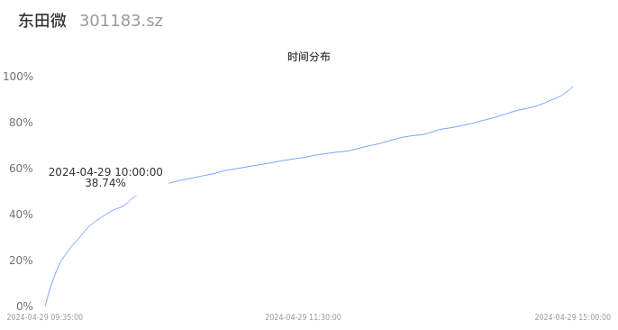 根据成交分布分析,该股票当天缩量成交,成交活跃。时间上看,早盘前半小时成交量占据当天总成交量的38.74%;价格上看,成交呈现中间峰。成交分布分析主要研究股票成交的分布特性,不具有预测功能,请知悉。