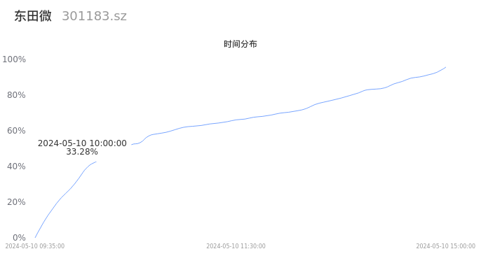 根据成交分布分析,该股票当天放量成交,成交活跃。时间上看,早盘前半小时成交量占据当天总成交量的33.28%;价格上看,成交呈现左偏峰。成交分布分析主要研究股票成交的分布特性,不具有预测功能,请知悉。