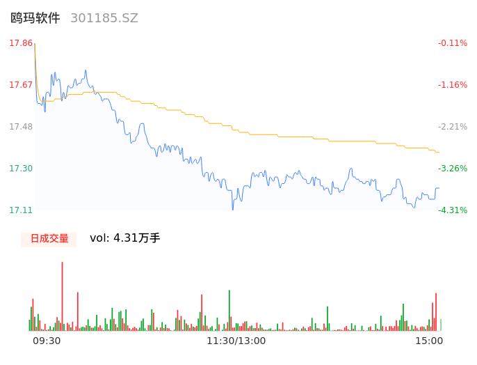 05月08日,鸥玛软件收报17.20,股价涨幅-3.80%,成交金额7480.05万元,换手率4.71%。