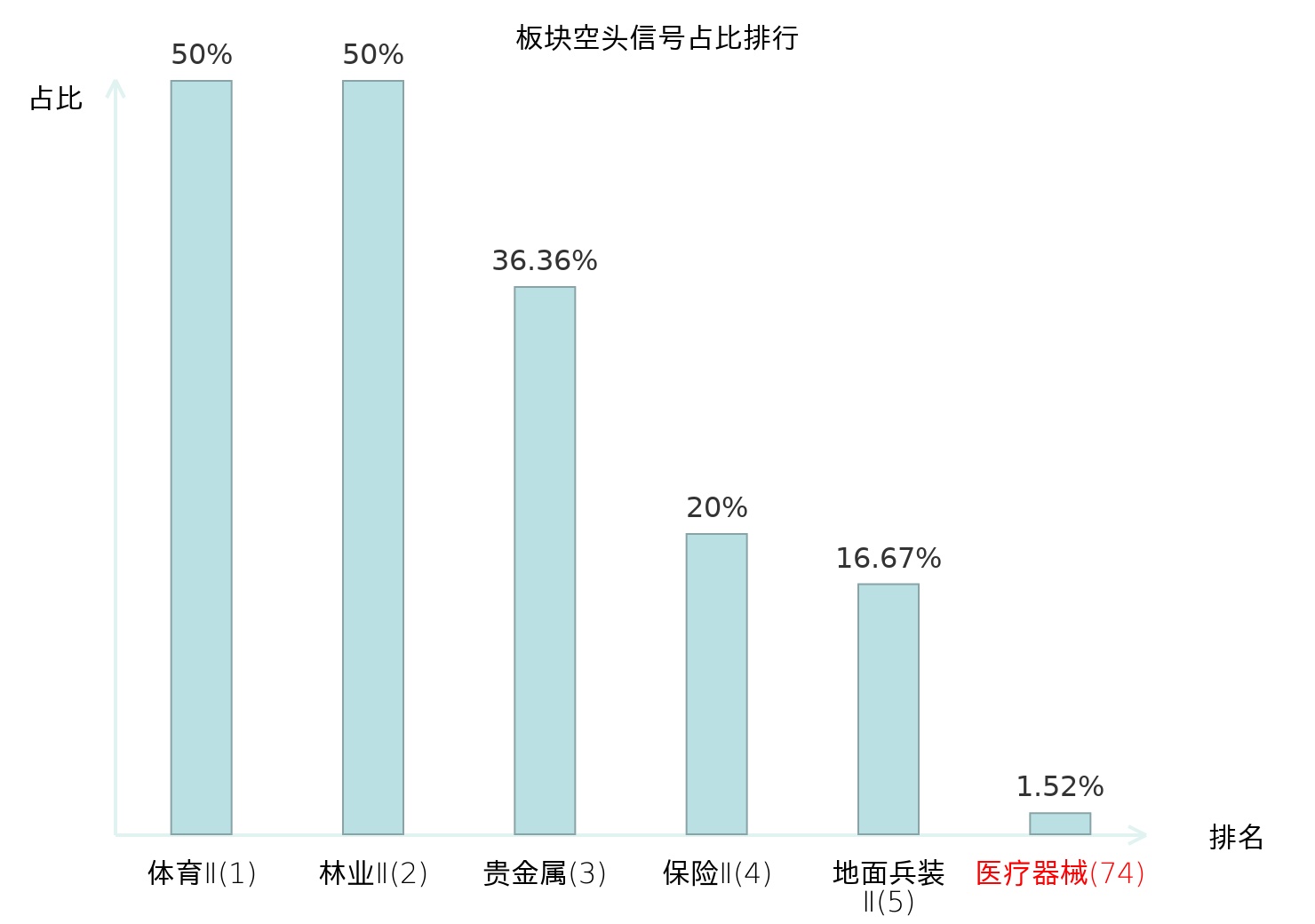 全市场所有行业板块中主力空头信号占比排名中,体育Ⅱ板块位居第一。电子化学品Ⅱ板块名次提升最快,较昨日上升110位。