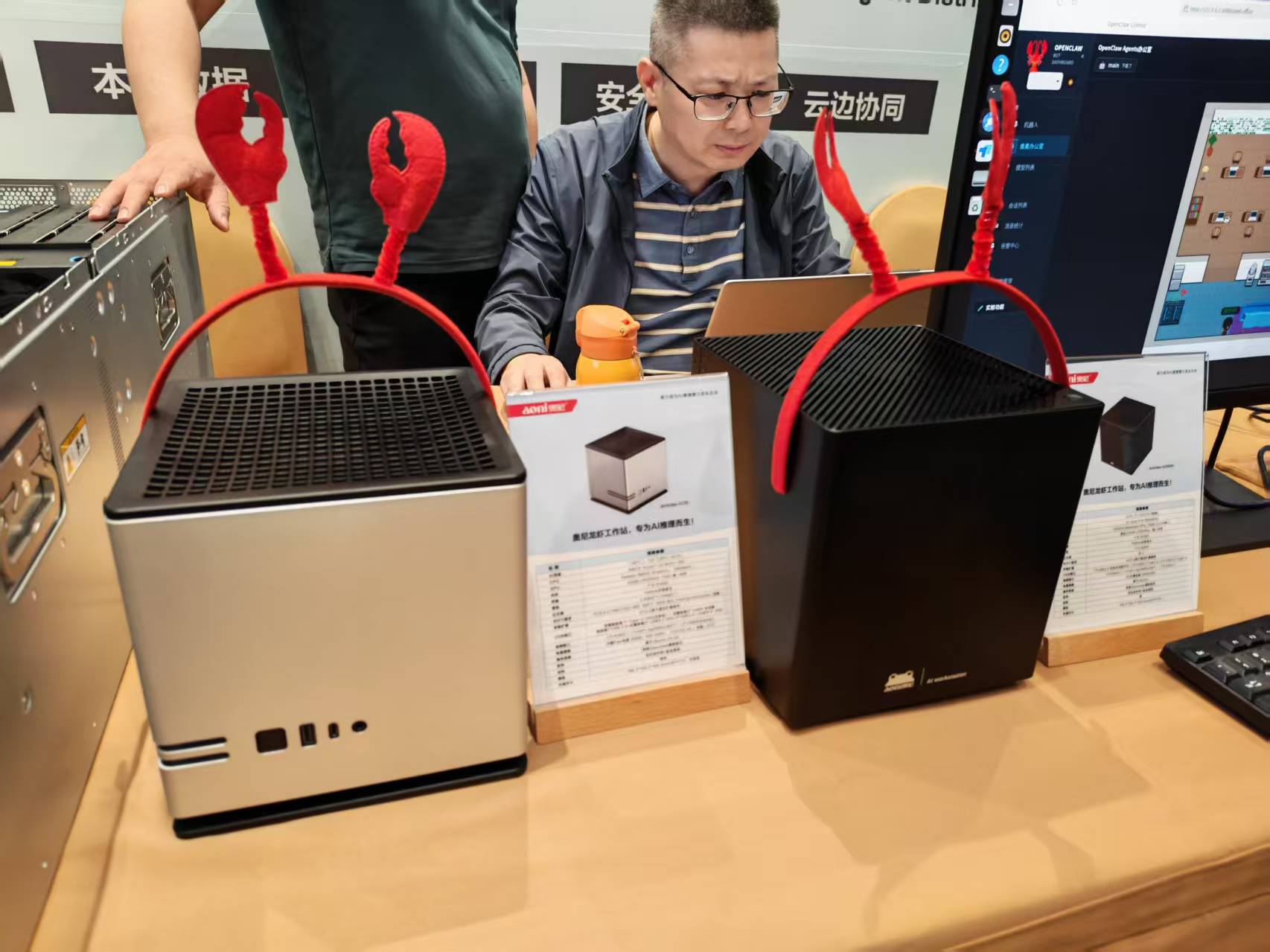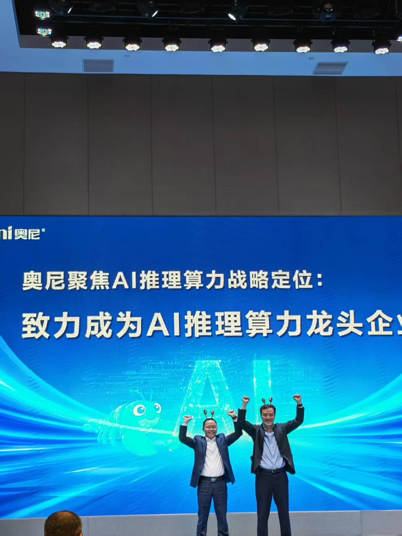现场气氛热烈,不少观众头戴龙虾装饰,奥尼电子董事长吴世杰头戴龙虾上台发表主题演讲,表达对AI战略的坚定,他表示2025年公司经营决策层达成共识,聚焦推理算力业务新战略,致力成为AI推理算力龙头企业,正式向市场推出自有品牌奥尼龙虾牌“aoniclaw”。奥尼电子拥有一定的AI推理算力硬件先发优势,将逐步构建“AI推理产业生态”,与生态伙伴一起打造云、边、端一体化的智能协同,AI推理算力全栈解决方案,为企业客户打造属于自己的“Token工厂”。