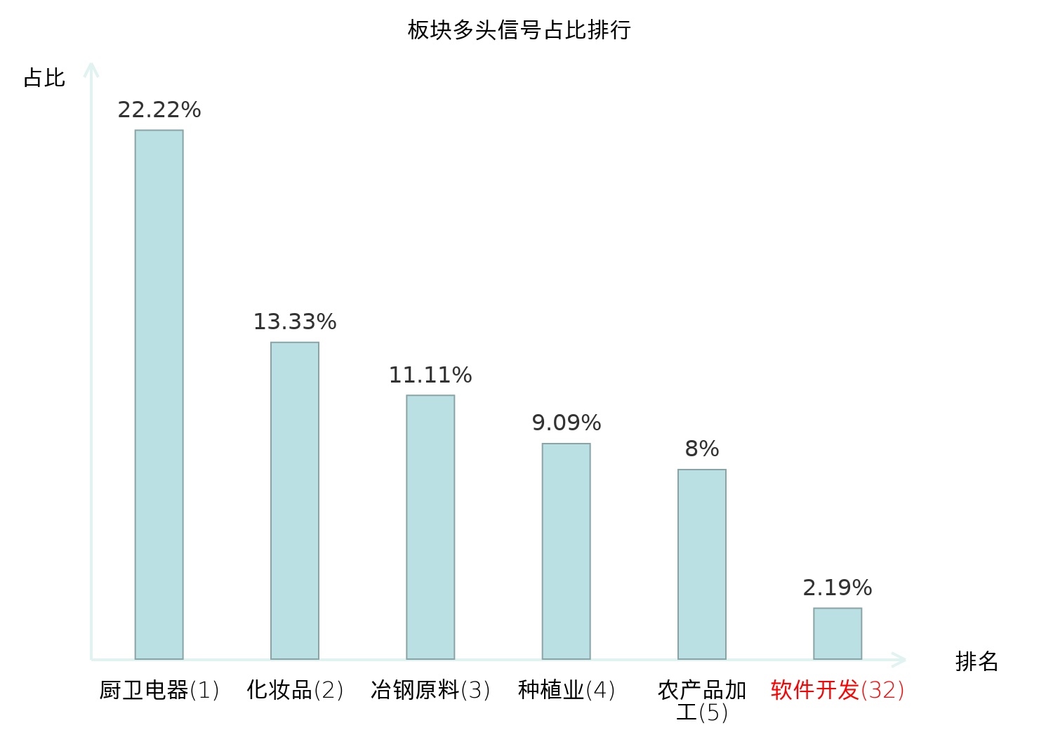 从主力宝信号数据分析,北路智控所属的软件开发板块中共3只股票发出主力多头信号,主力多头信号占比在全行业中排名第32位,较昨日上升29位。较高的排名表明主力对于该板块整体看多意愿较强;此次排名的显著上升可能反映了主力对该板块态度的积极调整。全市场所有行业板块中主力多头信号占比排名中,厨卫电器板块位居第一;化妆品板块名次提升最快,较昨日上升104位。这些变动揭示了不同行业间主力资金动向的结构性变化,为投资者评估市场情绪分布及潜在关注方向提供了客观依据。