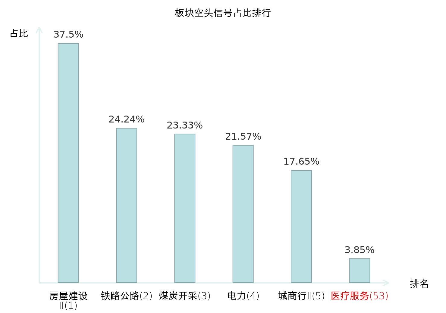 全市场所有行业板块中主力空头信号占比排名中,房屋建设Ⅱ板块位居第一。煤炭开采板块名次提升最快,较昨日上升117位。