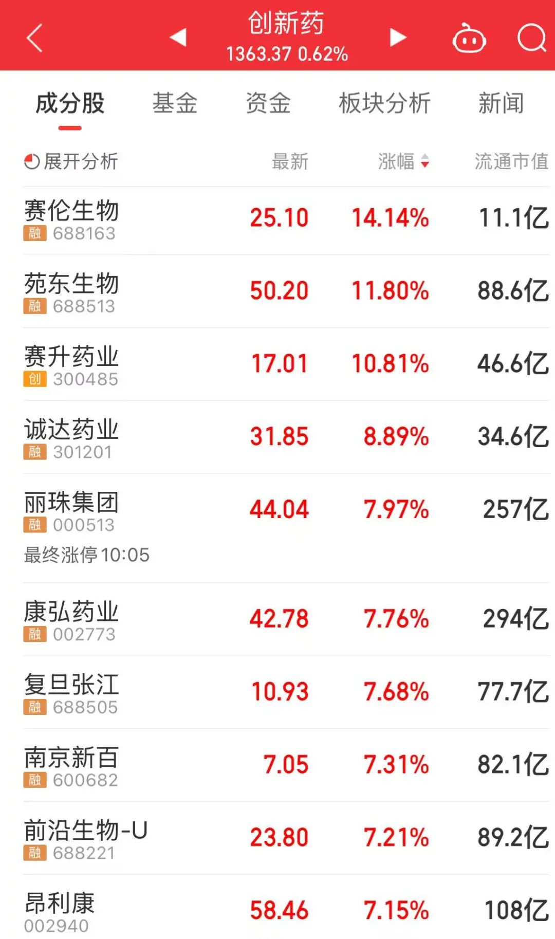今天上午,创新药板块延续近期上涨态势,赛伦生物、诚达药业等个股大涨。