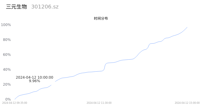 301206三元生物2024年04月12日成交1.19万手,成交金额3117.50万元,相较昨日放量3833手,换手率1.15%,成交清淡。