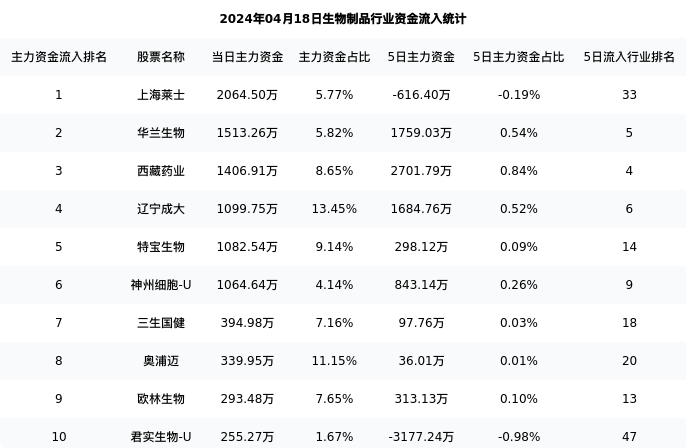 从主力资金流向来看,生物制品行业今日主力资金流入16.37亿元,在所有申万二级行业中排名:39/131。