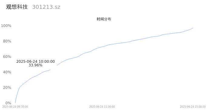 301213观想科技2025年06月24日成交9.18万手,成交金额4.46亿,相较昨日缩量2401手,换手率17.75%,成交活跃。