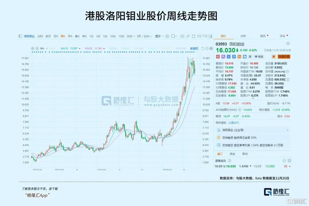所以全球铜、钴价格大涨,也让洛阳钼业的股价在今年迎来史上最强劲上涨行情。