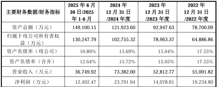 财务方面,于2022年度、2023年度、2024年度及2025年1-6月,公司实现营业收入约为5.5亿元、5.28亿元、7.34亿元、3.67亿元人民币;同期,净利润分别约为1.92亿元、1.41亿元、2.38亿元、1.25亿元人民币。