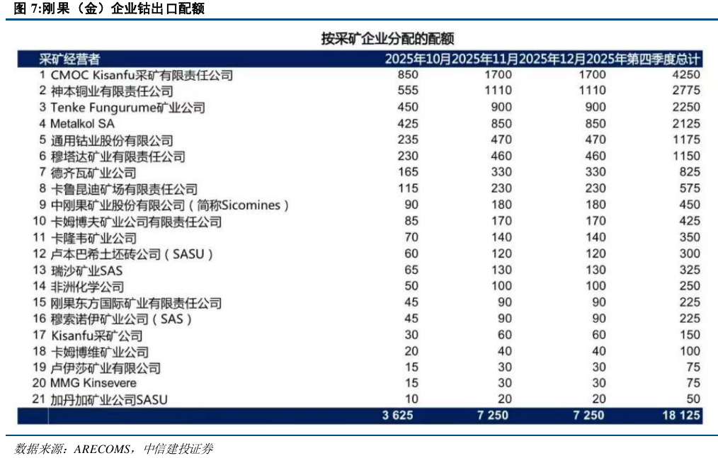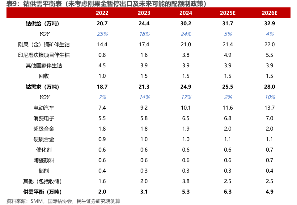 刚果(金)钴出口管制:2025年2月,全球最大的钴供应国刚果(金)实施钴产品临时出口禁令,并多次延长,最终于9月明确了2026-2027年约9.66万吨的年度出口配额上限。该配额远低于其约22万吨的年产量,市场预期全球钴供应将由过剩转为持续多年的结构性短缺。