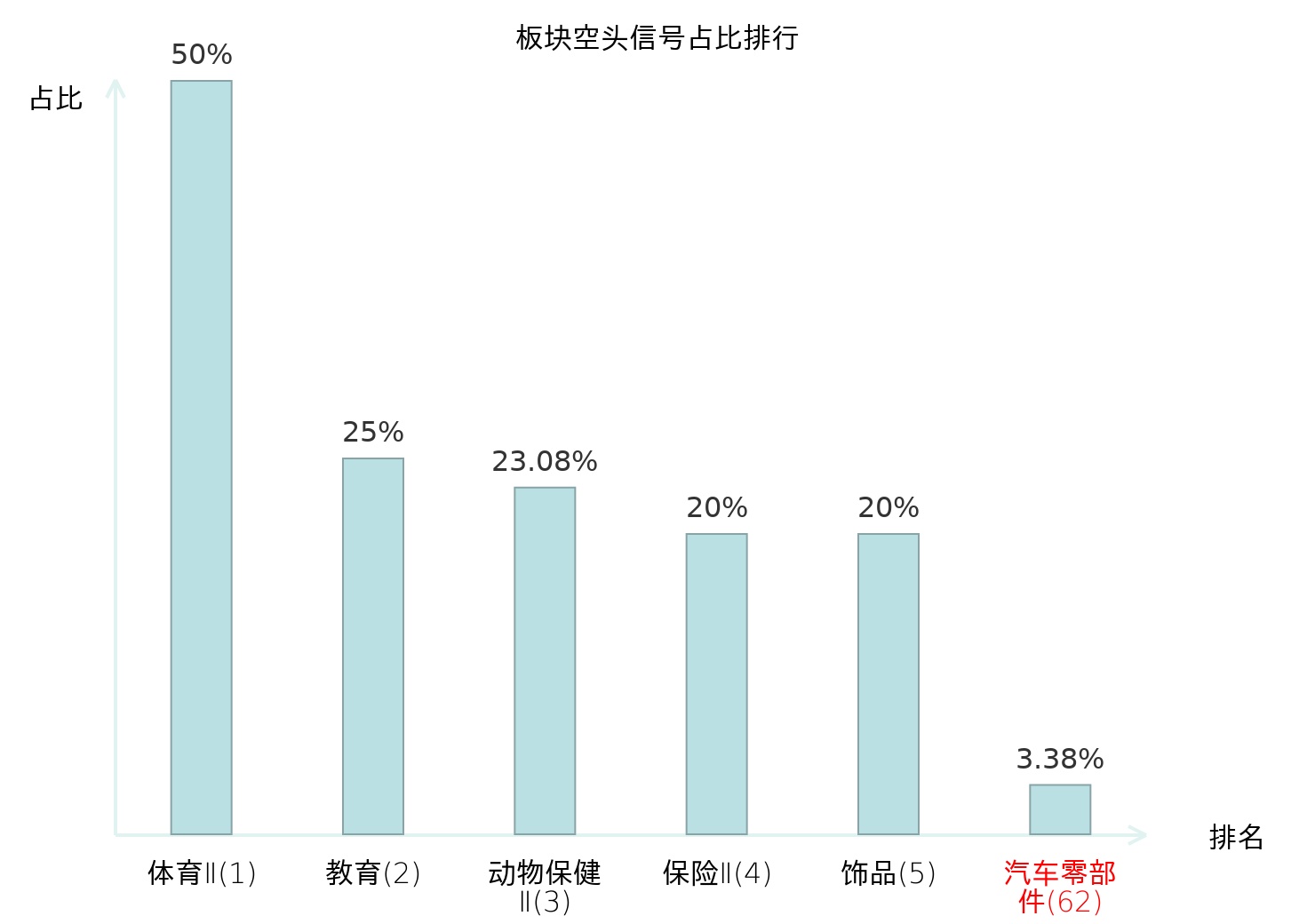 全市场所有行业板块中主力空头信号占比排名中,体育Ⅱ板块位居第一。服装家纺板块名次提升最快,较昨日上升115位。