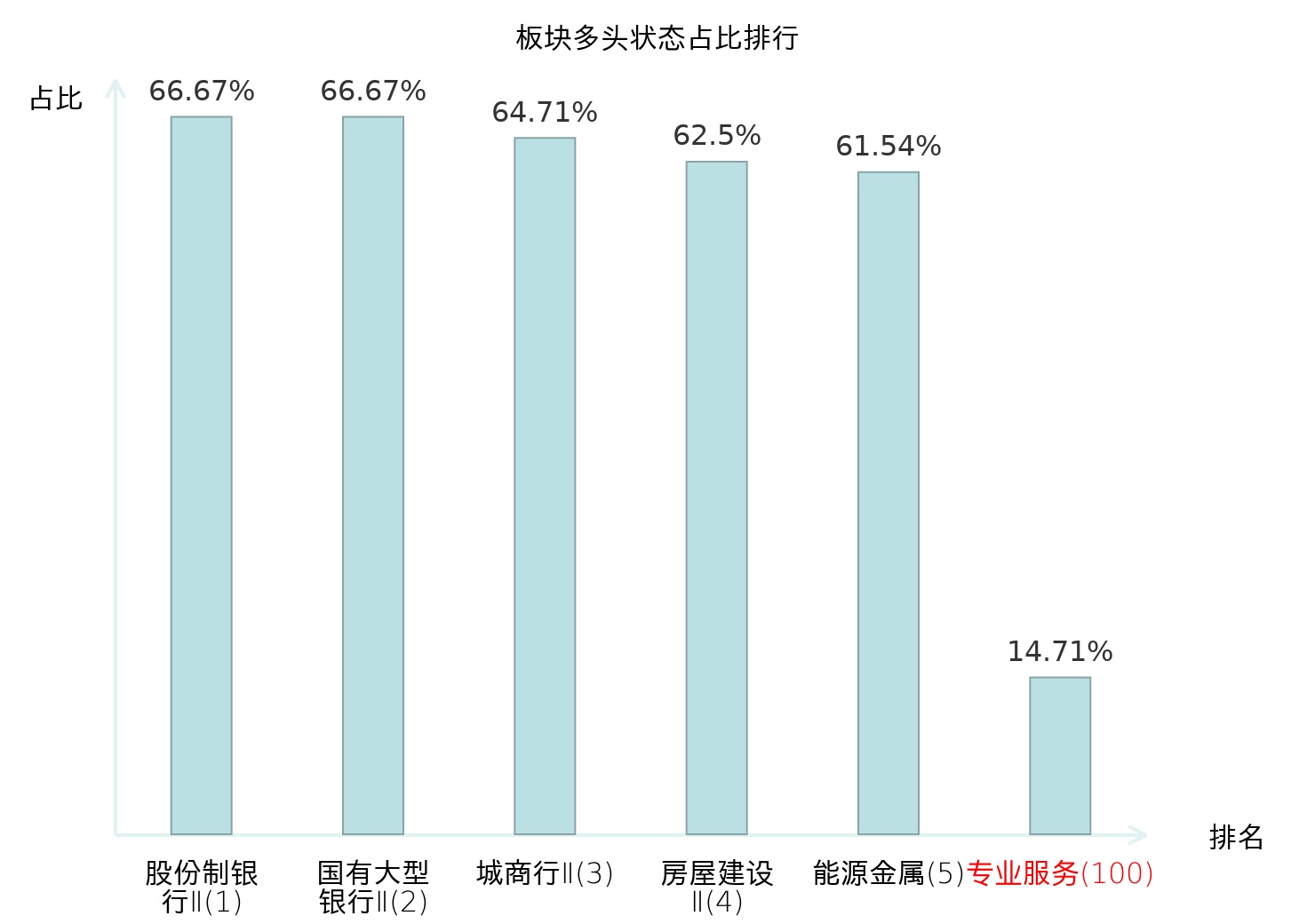 全市场所有行业板块中主力多头状态占比排名中,股份制银行Ⅱ板块位居第一。其他家电Ⅱ板块名次提升最快,较昨日上升102位。
