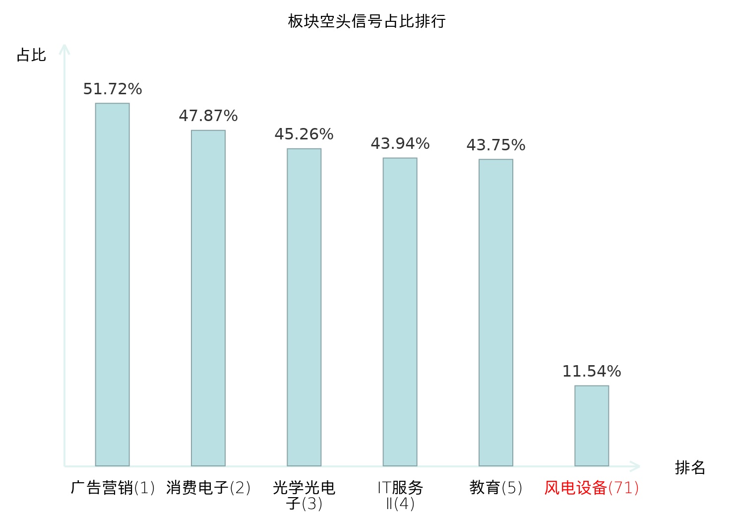 从主力宝信号数据分析,飞沃科技所属的风电设备板块中共3只股票发出主力空头信号,主力空头信号占比在全行业中排名第71位,较昨日下降36位。较高的排名说明主力当日卖出意愿较强,此次排名下降可能反映了主力对该板块态度的变化,为投资者提供了关于市场情绪和潜在机会的重要线索。全市场所有行业板块中主力空头信号占比排名中,广告营销板块位居第一。广告营销板块名次提升最快,较昨日上升115位。这些变动揭示了不同行业间主力资金动向的趋势,有助于投资者理解市场的动态和趋势。