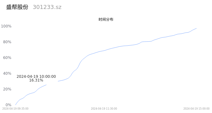 根据成交分布分析,该股票当天放量成交,成交活跃。时间上看,早盘前半小时成交量占据当天总成交量的16.31%;价格上看,成交呈现右偏峰。成交分布分析主要研究股票成交的分布特性,不具有预测功能,请知悉。