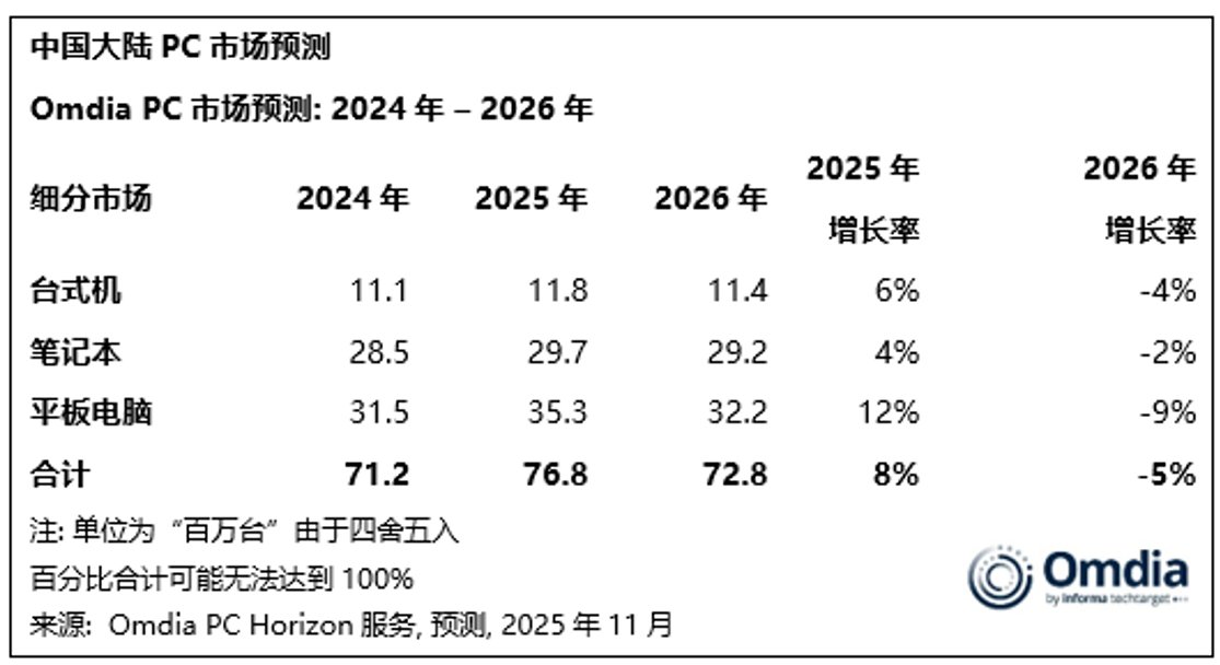 尽管 Omdia 预计 2026 年中国PC市场将因消费需求进一步走弱而小幅下降2%,平板市场也将面临9%的回调,但联想凭借在商用市场的深厚积淀、AI 技术的持续赋能,以及平板业务的高增长动能,有望继续抵御市场波动,延续领跑态势。