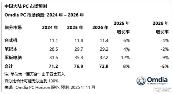 与PC市场不同,平板电脑在2025年仍保持强劲增长势头,中国市场的出货量同比增长9%至880万台。