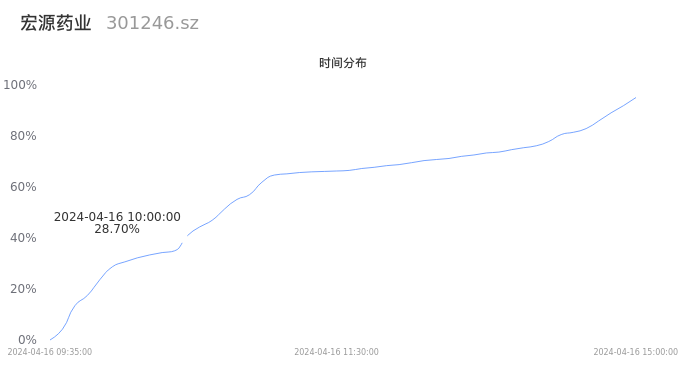 根据成交分布分析,该股票当天放量成交,成交清淡。时间上看,早盘前半小时成交量占据当天总成交量的28.7%;价格上看,成交呈现左偏峰。成交分布分析主要研究股票成交的分布特性,不具有预测功能,请知悉。