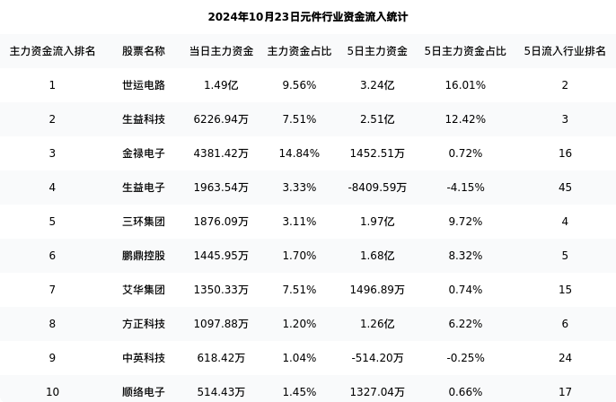 从主力资金流向来看,元件行业今日主力资金流入87.29亿,在所有申万二级行业中排名:18/131。