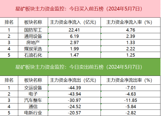 板块资金流出方面,交运设备板块主力资金净流出居首。