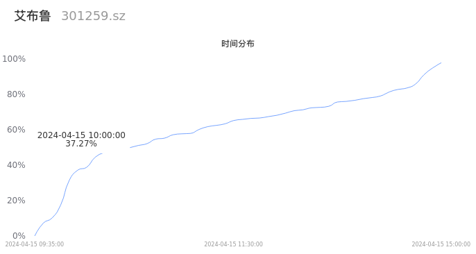 根据成交分布分析,该股票当天放量成交,成交清淡。时间上看,早盘前半小时成交量占据当天总成交量的37.27%;价格上看,成交呈现中间峰。成交分布分析主要研究股票成交的分布特性,不具有预测功能,请知悉。